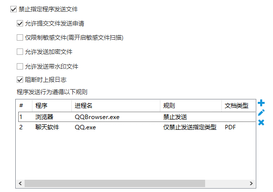 开启应用程序黑白名单后,可配置只允许特定程序在公司内部使用或者禁止访问一些高危程序。