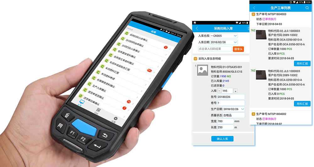 订单全流程监控:移动扫码追溯覆盖从原材料入库到领料、成品入库到出库、用料用工汇报、IQC来料品检到FQC成品终检的全过程。