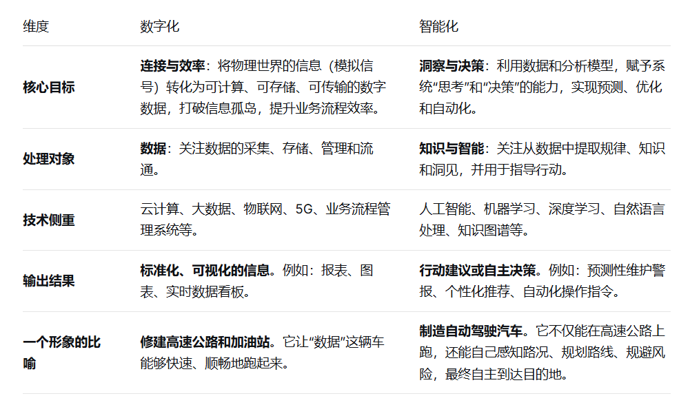 数字化与智能化是当前技术发展的两个关键阶段,它们既有区别又紧密相连。