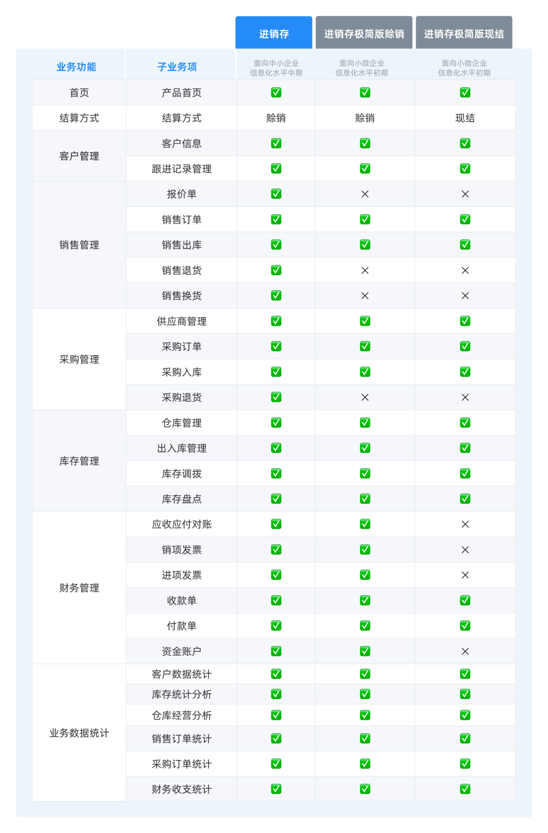 • 不支持财务对账