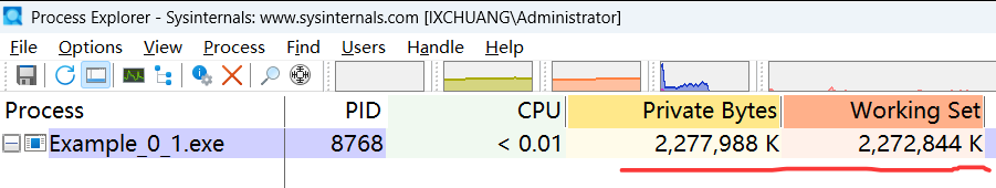 卦中的代码非常简单,就是每次读取 AppName 时都调了一下 BuildConfiguration 方法,仅此而已,但将程序跑起来之后,居然发现程序吃了 2.2G 的内存,真是没边的事,截图如下: