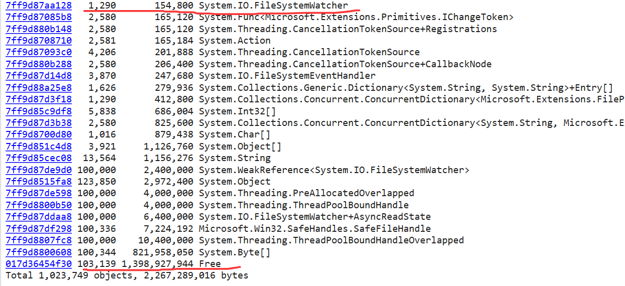 前些天又遇到了一例 FileSystemWatcher 引发的内存碎片化故障,但这个碎片化不是因为经典的 reloadOnChange=true 导致的,所以我觉得有必要做一次深度的反思,供以后遇到类似问题提供技术上的解决方法,这篇我们就来系统的讲解下 两种碎片化方式的调查方法。