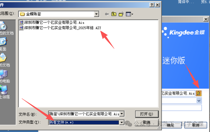 财务做账也快到了年结的时候,往年经常会有一些客户因为金蝶软件年结的事情找我,今天就提前发布一篇关于年结的注意事项及操作流程以下主要针对金蝶KIS迷你版/标准版的客户,因为这两个版本是一年一个单独的账套年结是对本年数据的确认,把本年的期末余额结转到下一年变成年初余额,同时在年结的过程中会自动生成一个独立的年结账套,方便查询打印,引出整年的报表,账本等现在先把在年结的过程中可能会碰到的一些问题描述下,说不定你也会碰到2. 我忘记结转本年利润一时手快就点了期末结账了,现在返不回去结转怎么办?3. 我年结后,想查看去年的账套,怎么登录时找不到去年的账套了?4. 年结后我发现去年做错了凭证,想要返回去修改凭证,我修改后,去年的数据是调对了,为什么下一年的期初没有发生变化?5. 年结后又做了一段时间的账了,现在要调去年的账,调账后重新年结,怎么导入今年新录入的凭证,如果手工补那就麻烦了下面一起来操作一下具体年结的过程同时解决上面提到的问题当整年的凭证全部做完后,也结转了成本,外币也进行了期末调汇,同时也结转了损益,凭证也过账了,和平时月份一样1. 打开科目余额表,看本年利润是多少,然后手工做一张本年利润转到未分配利润的凭证2. 打开自动转账,如图所示设置转账方案,直接点生成凭证就行,以后每年的最后一张凭证都来点一下就会把余额转到未分配利润了生成结转本年利润的凭证后,再进行凭证过账,把这最后一张凭证过账了就行下一步我们注意看,因为是12月的结账,所以会提示这是进行年结,同时告诉我们年结后会生成另外一个账套文件,比如账套是深圳市赚它一个亿实业有限公司.AIS,年结后会自动生成一个账套叫深圳市赚它一个亿实业有限公司_2025年结.AIY,之前的AIS的账套就会变成2026年的在年结前,金蝶账套文件夹里面只有一个账套文件,后缀是Ais格式年结后,这里会有两个账套文件,后缀AIS格式的一直是最新账套,而每年年结都会自动生成AIY格式的,同时名称里面有写20XX年的,就是这一年的账套之前很多客户朋友们年结前或者年结后,喜欢复制账套文件或者重命名文件,最后把账套搞乱,其实系统自动会区别账套是那年的现在我知道了那个是年结账套了,但是我登录时怎么看不到以前的账套,那平时怎么登录打开年结账套呢?这里有两种方式:一种是登录时点后面的文件图标,下面文件类型选择所有文件,然后上面的年结账套就会显示出来了,选择它进行登录就行另一种是先登录现在的账套进去后,右上角文件下面有一个打开年结账套,它就可以直接显示年结账套出来,选择它打开就行现在继续回复上面提的问题,如果还没有结转本年利润,只是一时手快点了期末结账,还没有录2026年的凭证怎么办?首先不要登录软件,找到刚才的金蝶账套的文件夹,发现里面有两个账套,一个是25年的,一个是26年的,可以直接把2026年的账套删除,然后鼠标右键重命名,把深圳市赚它一个亿实业有限公司_2025年结.AIY修改成深圳市赚它一个亿实业有限公司.AIS 前面的2025年结要删除,另外后面的后缀的Y要修改成S,修改后会有如下提示,点是就行然后登录这个账套就又回复到年结之前了,再结转本年利润和年结就行那如果年结后又做了一些凭证了,发现去年的账要调整怎么操作呢?首先直接把去年的账套的后缀的AIY修改成AIS,然后打开账套进去直接调账,调整完成后,再点期末结账,就会重新生成年结的文件和新的26年的账套打开新的26年的账套,我们进行凭证的导入,右上角文件下面引入-凭证,选择旧的26年的录了凭证的账套这里的条件要特别注意,日期可以选择全部凭证的日期,看26年做了几个月账了,选择所有凭证,钩上包含由系统自动生成的凭证,最最重要的是不要钩重排凭证号,这样凭证就会引过来了,但是也可能会有一些失败的凭证,比如新增加了新的科目,那么这些凭证导不过来的,需要先补上科目,再导凭证,或者再手工补凭证也行年结的问题一般就这些,如果还有其它的问题需要补充的,可以留言沟通一下!