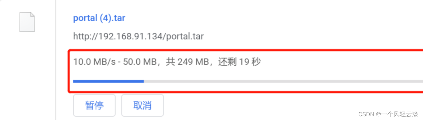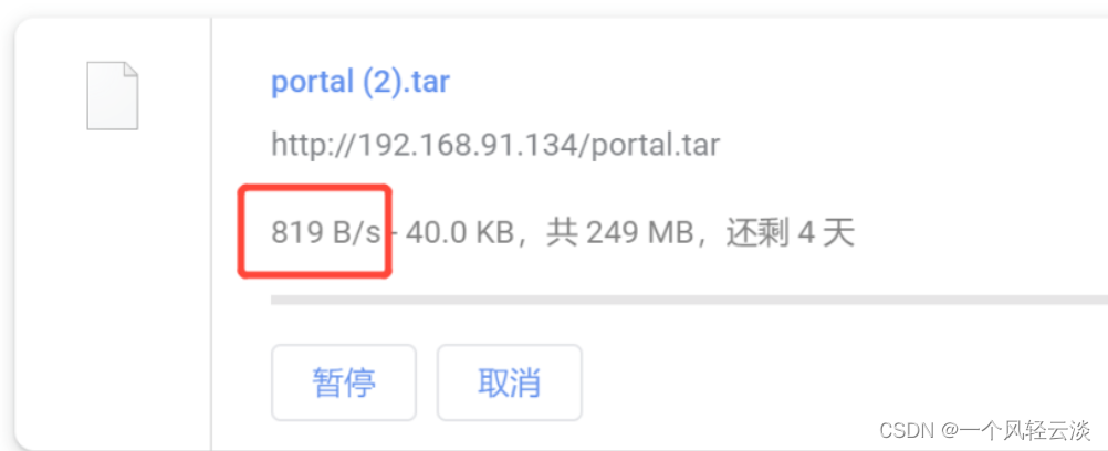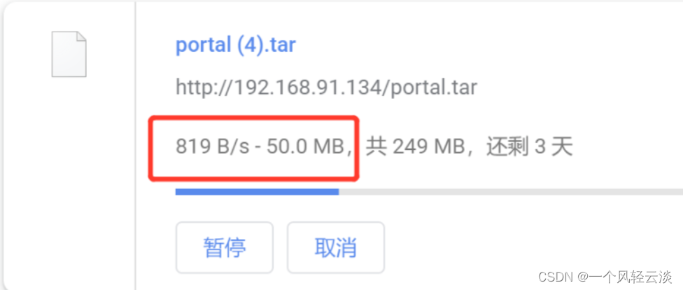 在浏览器输入 http://xxxx/portal.tar 下载 portal.tar 文件 可以看到下载速度在 1k 以内