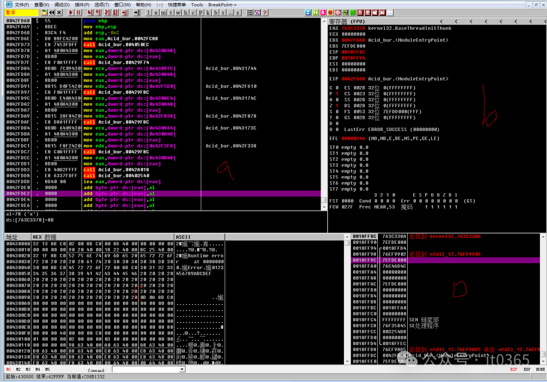 软件分为了2种注册方式,一种是用户名和注册码另一种直接输入注册码完成软件注册。 作为学习,我们一起了解下这个软件的注册算法思路及破解方法。首先需要的逆向软件:OllyDBG.EXE 可以去网上下载个反汇编软件OllyDBG.EXE启动后,直接把要逆向的程序 拖拽到反汇编程序内进行反汇编。如图: