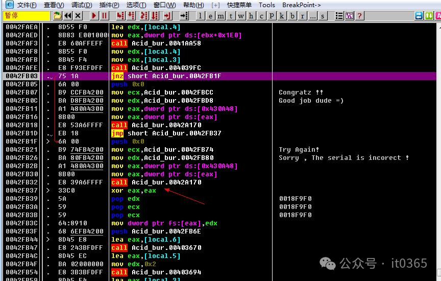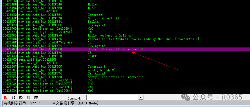 直接提示了错误信息。那好,直接记住这个错误提示,在OD内去找它的提示信息。