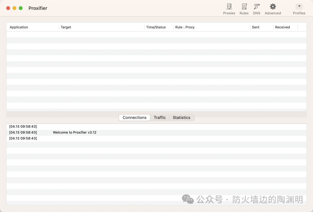 Proxifier 自带实时连接窗口,显示每条连接的如下信息: