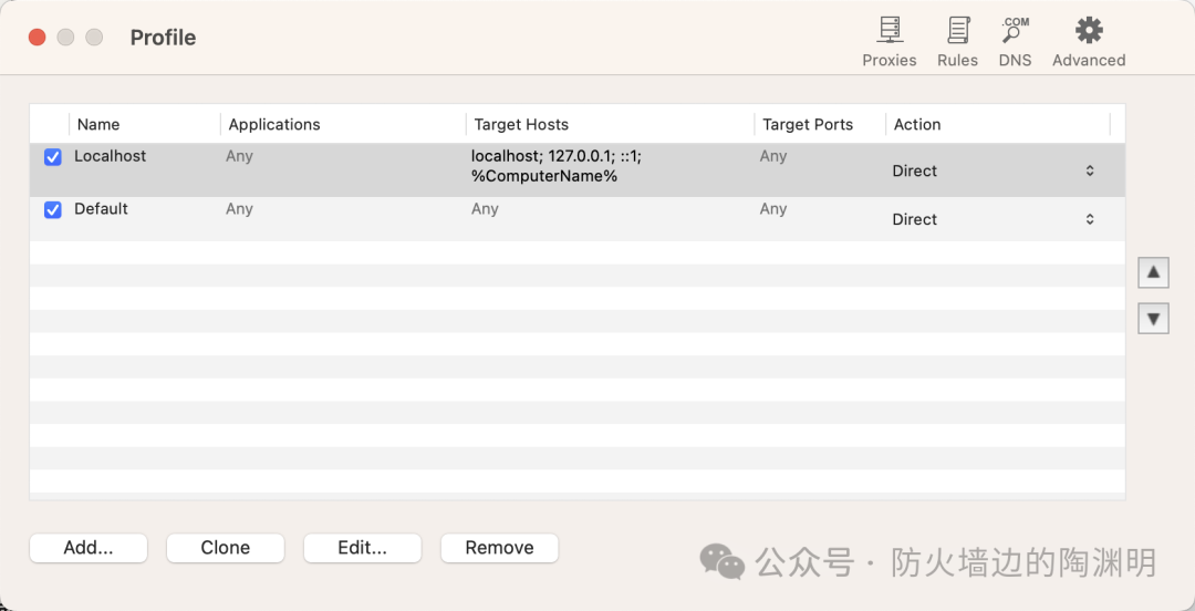 使用场景访问某公司API时走Proxifier,其他流量不受影响
