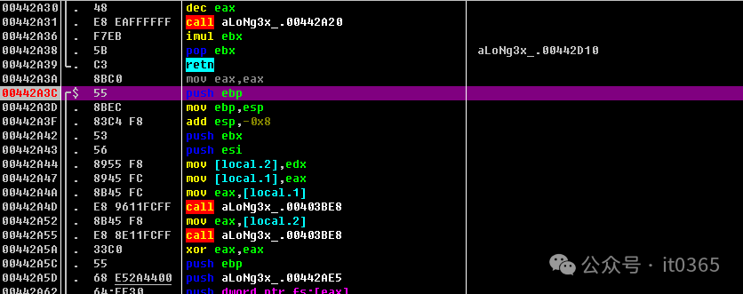 00442C28  |> \8B45 F4       mov eax,[local.3]00442C2B  |.  8B55 FC       mov edx,[local.1]00442C2E  |.  E8 110FFCFF   call aLoNg3x_.00403B44