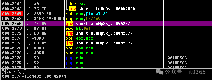 00442C40  |. /75 04         jnz short aLoNg3x_.00442C4600442C42  |. |B3 01         mov bl,0x1