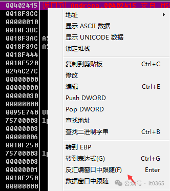 看到00402415调用了它,那就在返回到这个地址。右键选择反汇编跟随(回车键)。
