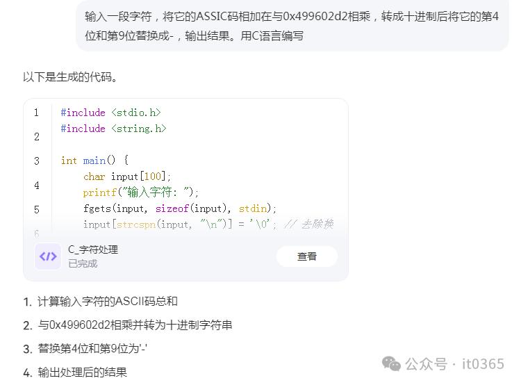 printf("处理结果: %s\n", result);    return 0;}