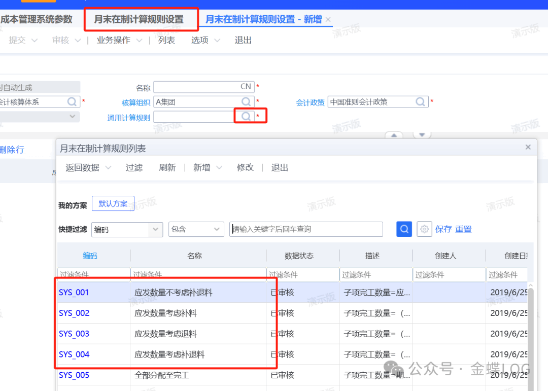 ②按【月末在制数】:可以在【月末在制计算规则里】选择是否考虑补退料。
