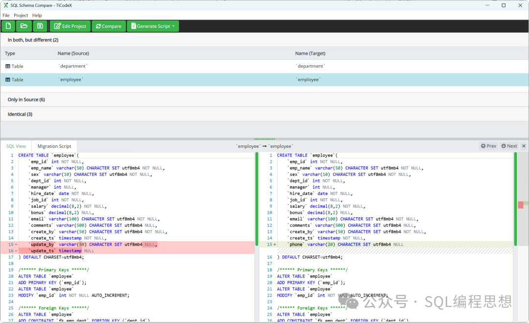 在数据库管理和开发的过程中,你是否曾因不同环境间的数据库结构不一致而头疼?一个在生产环境中正常运行的系统,在测试环境却莫名报错;团队协作时,因疏忽某个表的改动而导致接口调用失败……这些问题都可以通过一款强大的开源工具解决。简介TiCodeXSQLSchemaCompare是一款免费开源的数据库结构比较和同步工具,主要采...