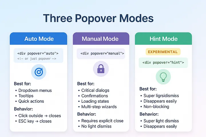 上周二,改一个“远古”管理后台的时候,被气笑了。为了维护几个弹窗,居然堆了500多行JavaScript:管理焦点的focustrap监听Esc关闭点击遮罩关闭一堆ARIA无障碍属性禁止body滚动各种事件绑定、解绑、边界情况……如果你写过稍微像样一点的Web应用,你八成也干过这些事。各种modal、dropdown、...