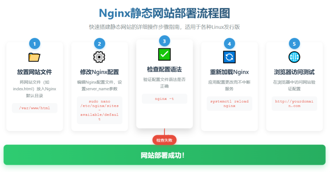 Nginx是一款高性能的Web服务器和反向代理服务器,广泛应用于网站托管、负载均衡、安全防护等场景。当然对于刚接触Nginx的运维人员来说,掌握一些实用技巧可以大大能提升工作效率。这里给大家分享几个非常实用的Nginx配置技巧,适合小白快速上手。1.快速搭建静态网站Nginx最基础的功能是托管静态资源(如HTML、图片...