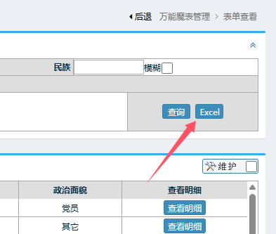 设计好的万能魔表明细表如何导出为excel格式文件?注意页面上有一个Excel导致按钮,点击即可。