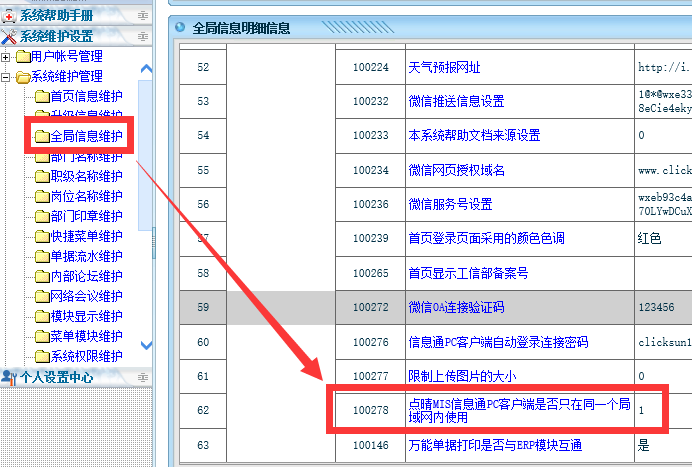 如果确定本单位所有用户都在同一个局域网内,通过以下设置,点晴MIS信息通PC客户端可以强制使用登录OA的IP地址,而不再自动扫描判断对方IP地址,就可以正常使用各项功能了: 1、如果确定本单位所有用户都在同一个局域网内,并且使用的IP地址符合上面国际互联网局域网IP地址规范,那么可以在点晴OA中如下位置,设置该值为:1,就可以正确显示对方的IP地址了: