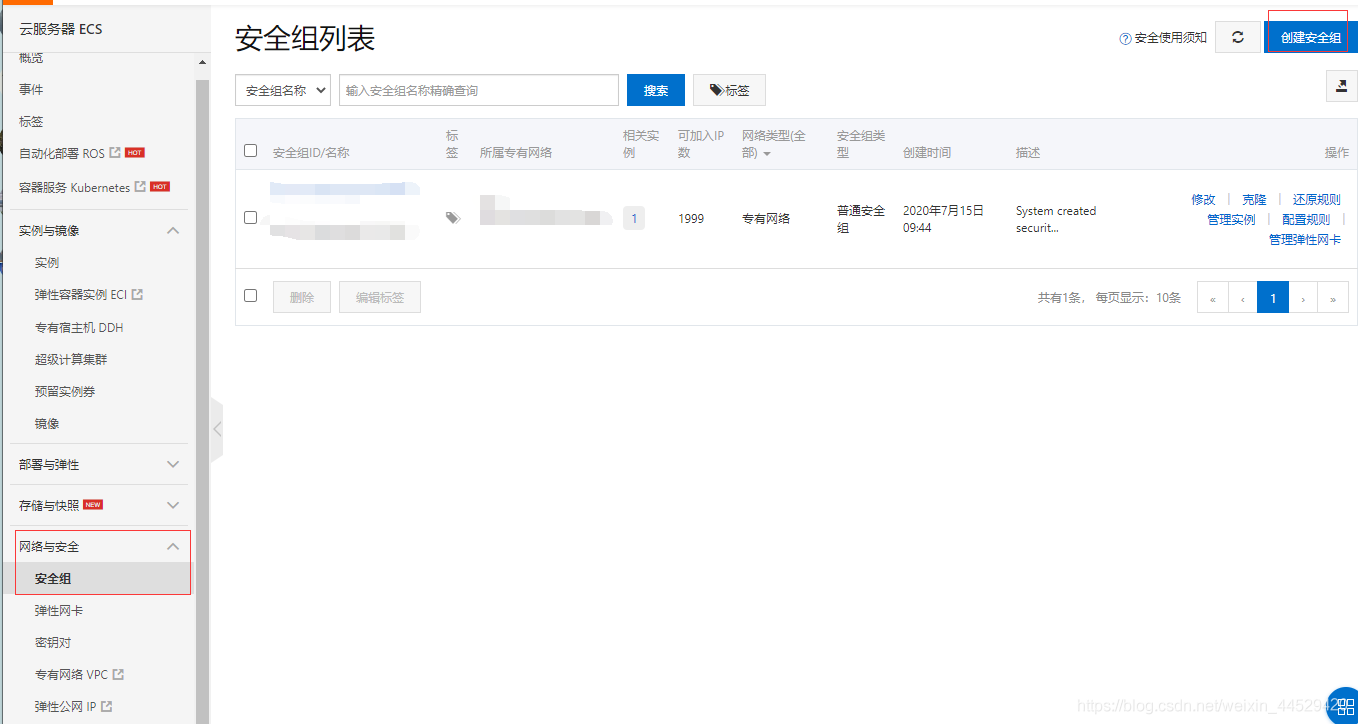 3、登录阿里云,在左侧控制台创建安全组: