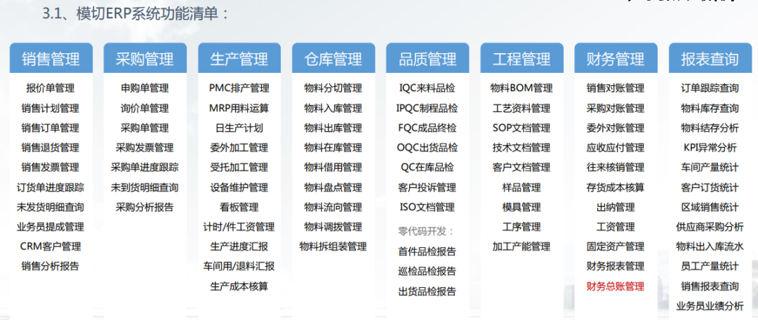 对于模切这个特殊行业而言,选择模切ERP系统关注的重点在于能否解决模切管理上的痛点,这就意味这选择专业的模切ERP系统是模切企业成功的关键。多计量单位:一个主计量单位,多个辅助计量单位,支持各计量单位之间的自动换算,符合模切行业以米 / 平方米 / 卷 / PCS等不同的环节计量需求。智能BOM:智能识别可替用物料,合理安排分切计划和生产计划,精确精算物料需求量,根据缺料情况自动形成申购单。智能算料备料:实现仓库物料自动锁定订单,多种用料规则设置,数分钟完成数千订单统筹备料,呆滞物料优先使用,可有效帮助PMC排产/备料/申购,很大程度降低呆滞料的产生。智能分切:实现了分切料自动集成原始母料的基础属性,自动识别可替代物料,自动计算尾料,从而降低呆滞物料产生。智能防呆:模切成品或者物料保质期过期提醒,可以设置多种自定义提醒类型,扫码二维码时系统自动提醒,实现智能防呆和纠错。