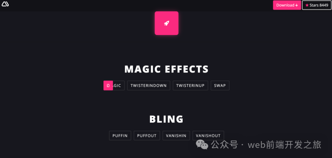特色功能:一个简单实用的动画集合,直接嵌入到网页或应用即可使用,无需复杂配置。