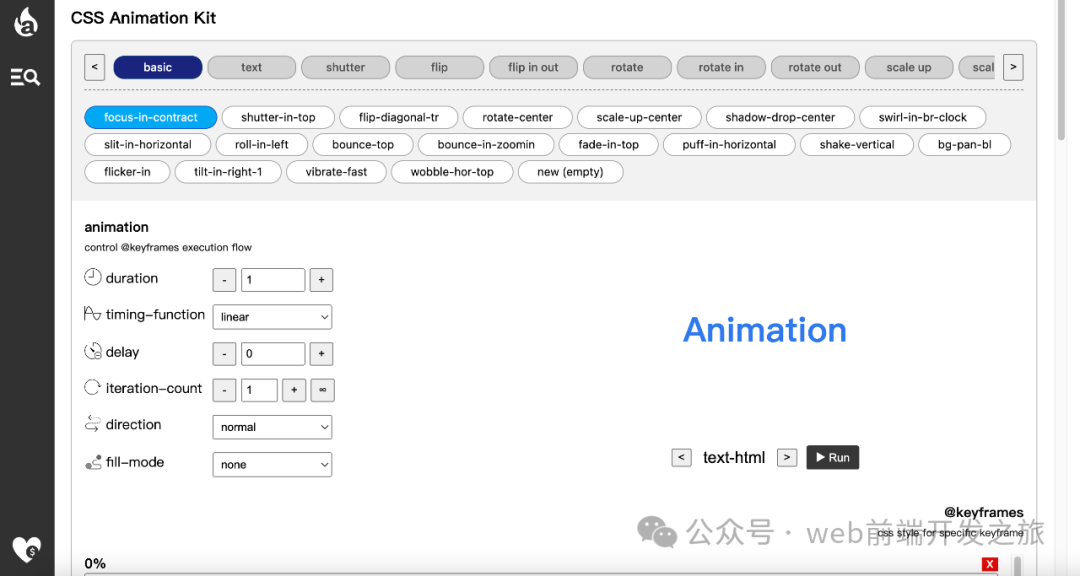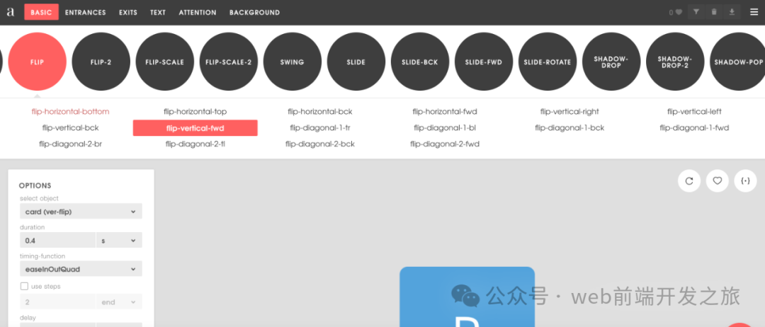 访问网址:https://animista.net/play/basic/flip/flip-vertical-fwd