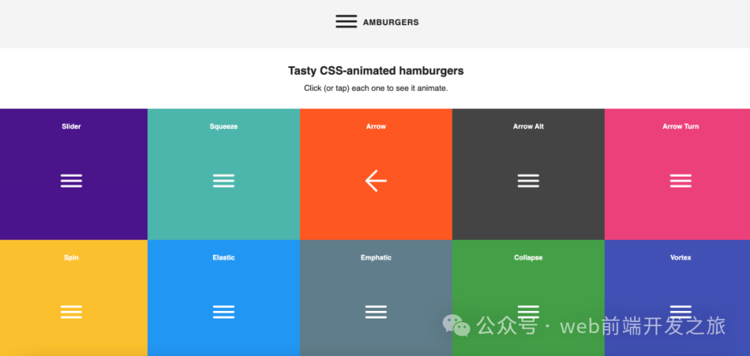 特色功能:一组精美的汉堡菜单图标动画,适用于移动端和响应式网站设计,支持Sass定制。
