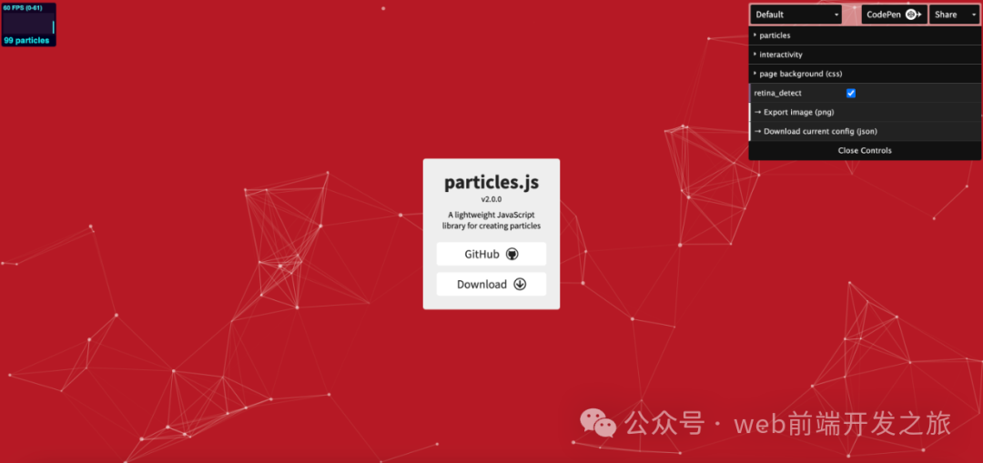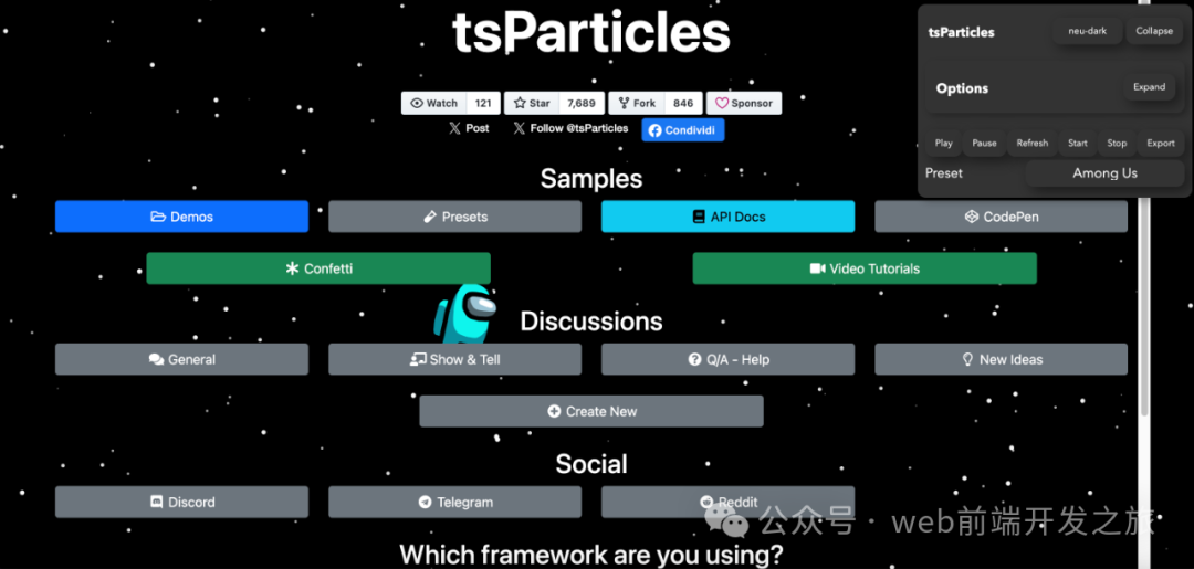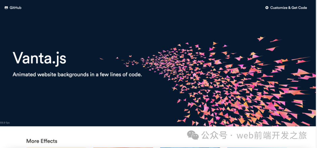 特色功能:轻量级粒子效果库,能生成动感背景和炫酷的网页开场动画。