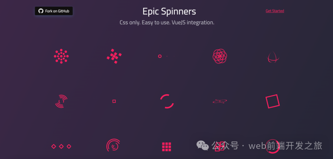 特色功能:Vue.js集成的CSS加载动画,轻松实现各种动效加载图标,非常适合前端项目。