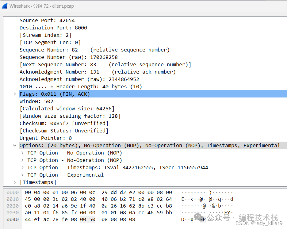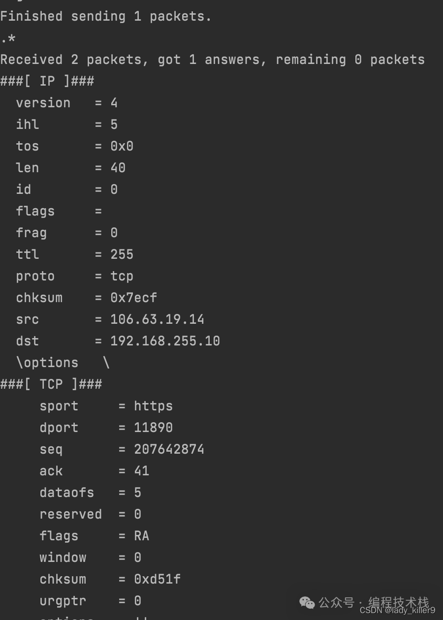 # 创建 ACK 数据包,也不添加 TCP 选项
