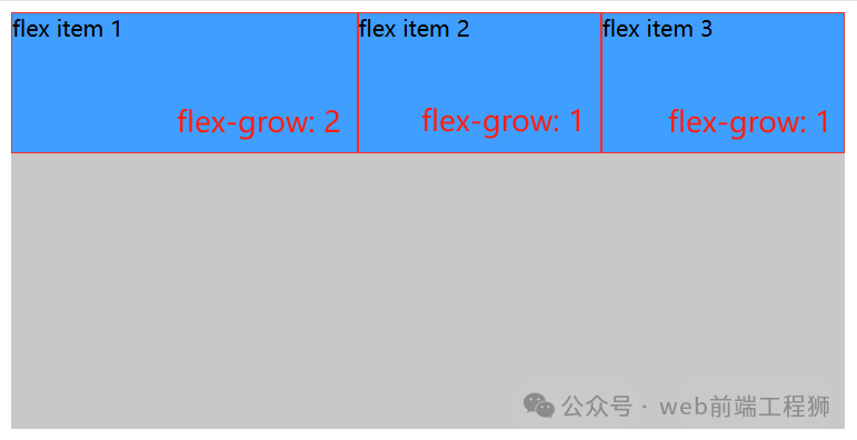 • 示例:如果三个项目同时设置 flex-grow: 1 则等分剩余空间