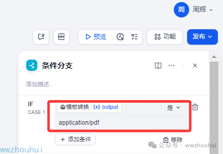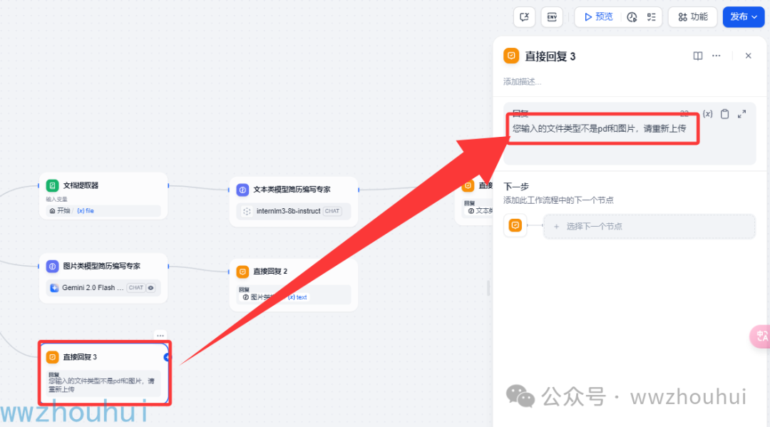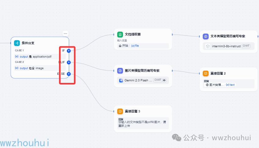 这个地方其实就是在if条件判断的地方让工作流走else分支,万一用户输入的不是PDF 也不是image 就让用户重新输入