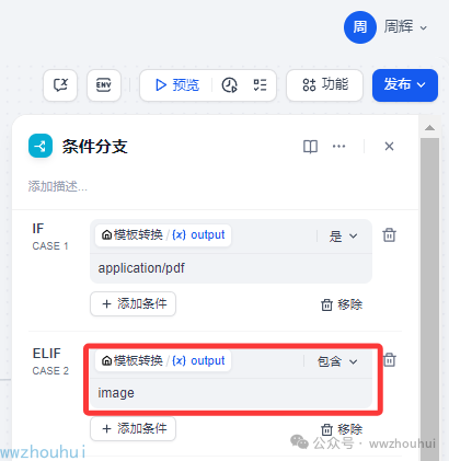 这个条件分支我们判断的条件就是上个 节点中filetype 返回的类型。
