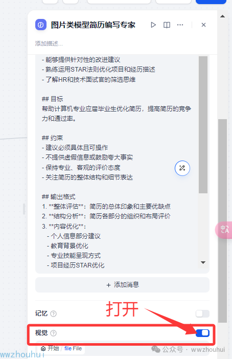 因为用了多模态,所以我们把模型视觉开关打开(这个地方需要注意一下,很多小伙伴在用多模型模型的时候这个地方不开启)