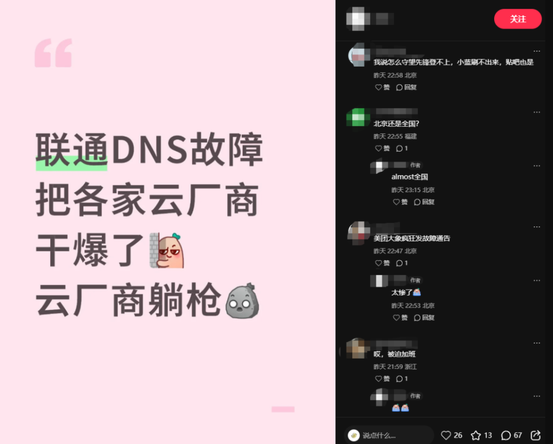2025年8月12日晚,北京一位电动车用户在雨中充电,扫码付款时屏幕突然显示网络连接失败。与此同时,公司白领发现抖音、微博无法刷新,餐厅顾客无法用支付宝结账——无数人反复开关手机,却未意识到一场区域性网络瘫痪正在蔓延,这已是24小时内北京地区第二次运营商级DNS故障,前一日移动用户刚经历了类似遭遇。
