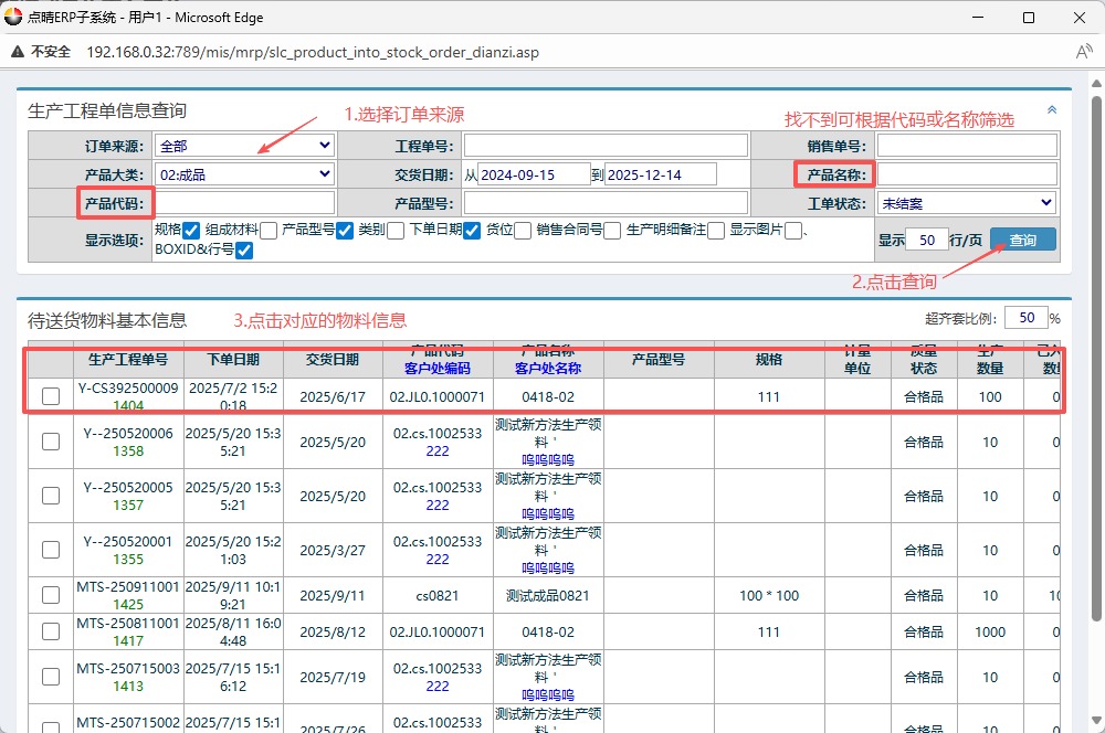 :点晴ERP-BOE成品入库流程
