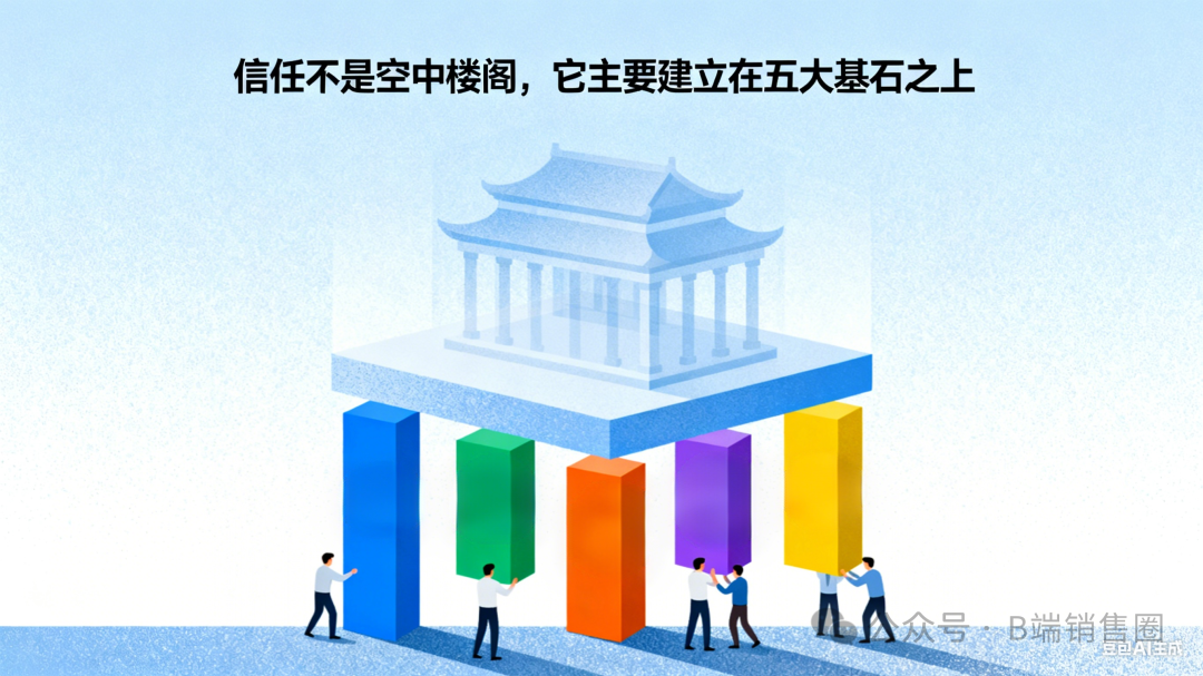 知识可以拉分,但如果心理距离没拉近,就会变成压迫感,反而让客户更远。 反之,如果心理距离近,哪怕你不完美,客户也更愿意把机会交给你。 所以,销售的修炼,本质上就是从“关注自己”,转向“真正关注客户”。 ![]() 三、 从敷衍到交心:赢得信任的“五大基石”信任不是空中楼阁,它有迹可循。结合实战,我发现它主要建立在五大基石之上:1️⃣ 形象与风格——第一印象的开门票在电话销售里,客户对你的第一印象往往只用 7秒钟就形成。