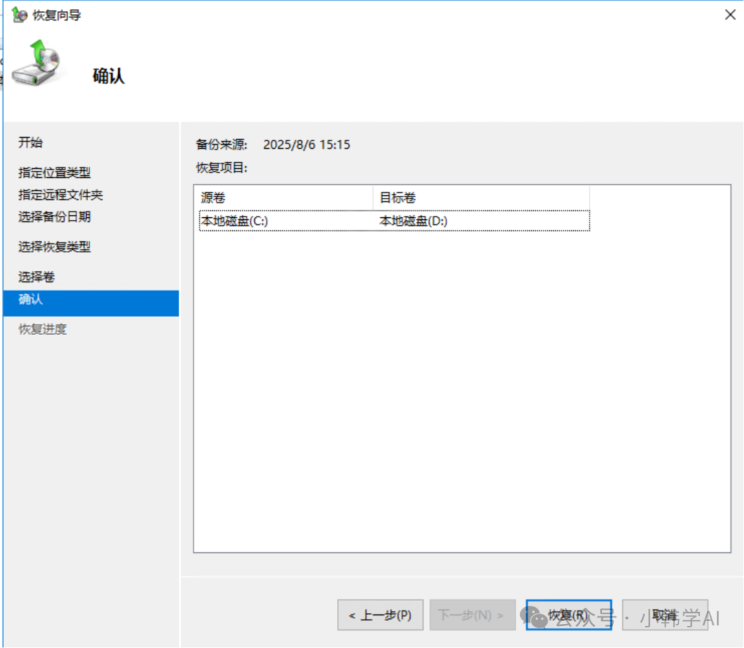 - 本篇文章主要介绍使用windows server backup图形化工具恢复