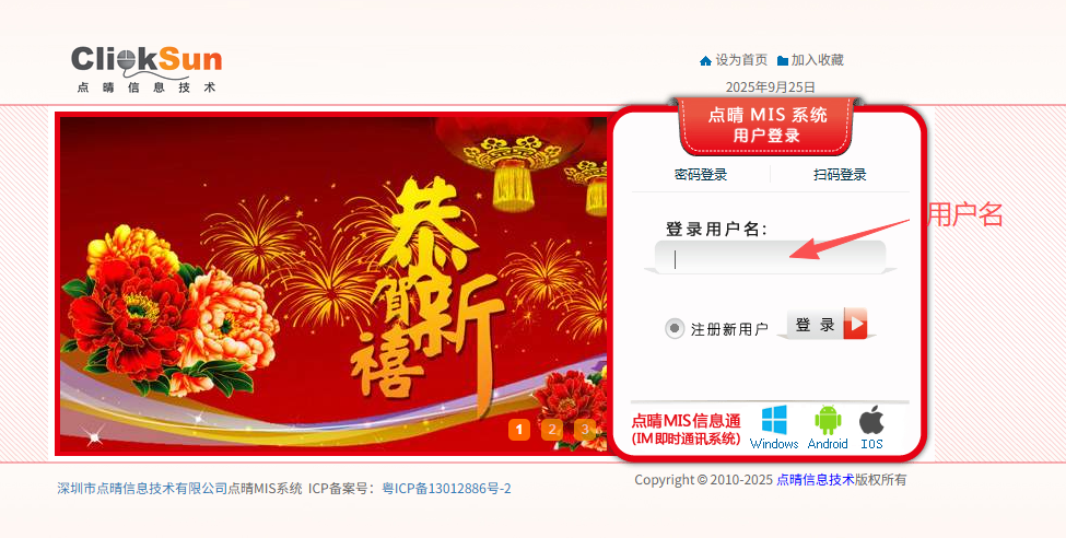 :点晴ERP-采购入库计划操作流程![]() 1.登录并进入ERP系统内。输入用户名和密码。