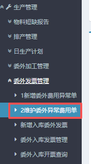 5.提交后,返回到左侧功能菜单里找到“维护委外异常费用单”进入。
