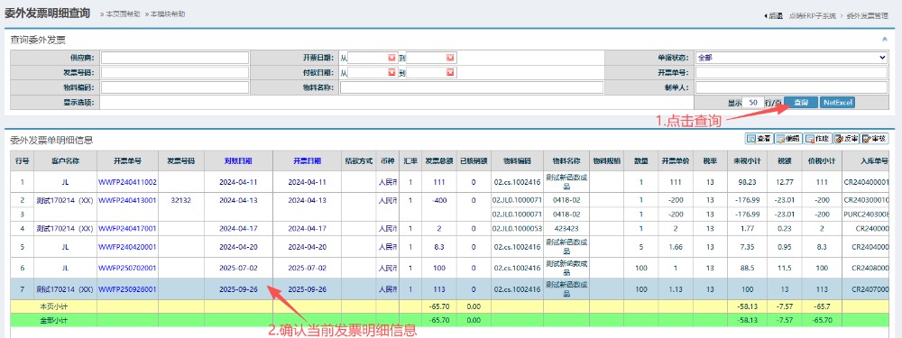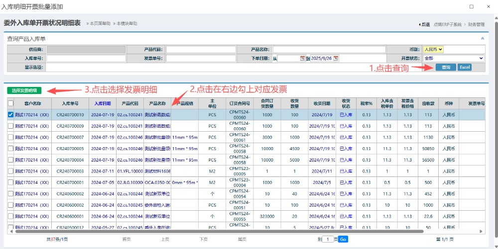 点击进入后,按图操作:点击查询,就能看到刚才提交的发票信息明细。