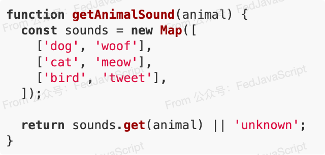 有时,一长串的 if...else if...else 结构,实际上可以用更优雅的数据结构来代替,比如 Map 或对象字面量。