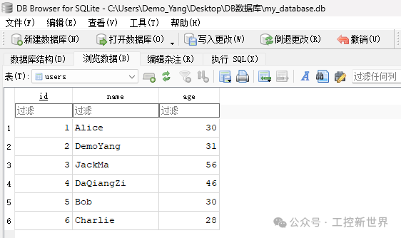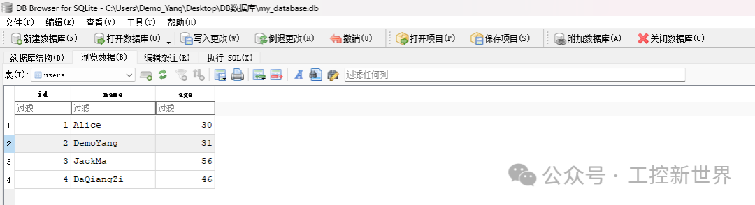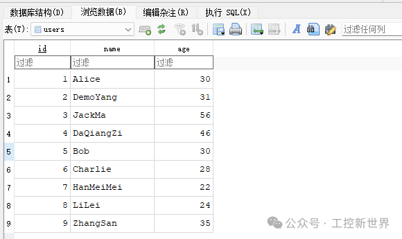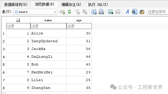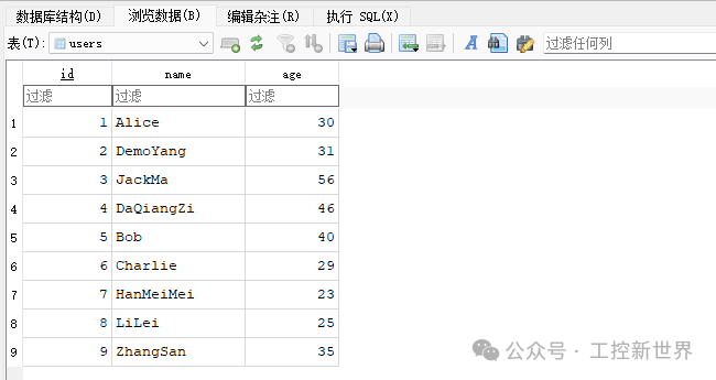 点击 "数据浏览" 标签,选择你刚创建的表(例如:users)。