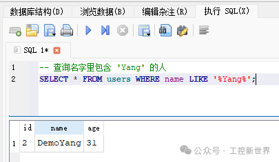 执行查询后结果: