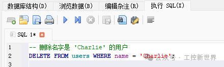 -- 删除名字是 'Charlie' 的用户