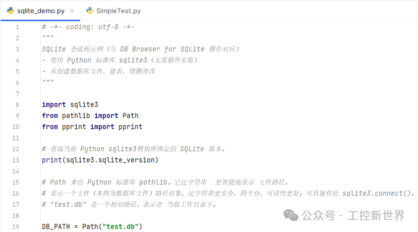 用标准库 sqlite3在本地创建 SQLite 数据库文件,并完成:建库/建表 → 插入数据 → 查询 → 更新 → 删除,全流程示例。