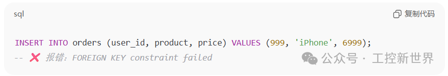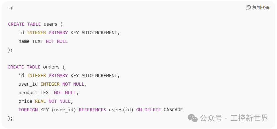 1. 如果删除了某个用户,ON DELETE CASCADE 会自动删除该用户的订单,避免出现“孤儿订单”。