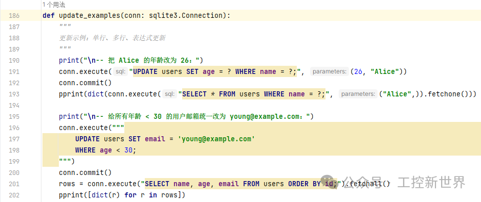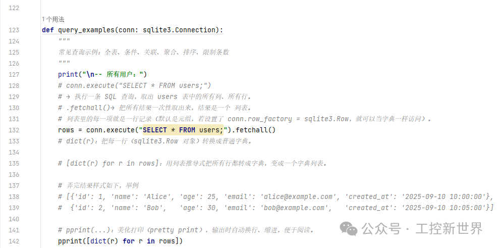 函数4def query_examples(conn: sqlite3.Connection):