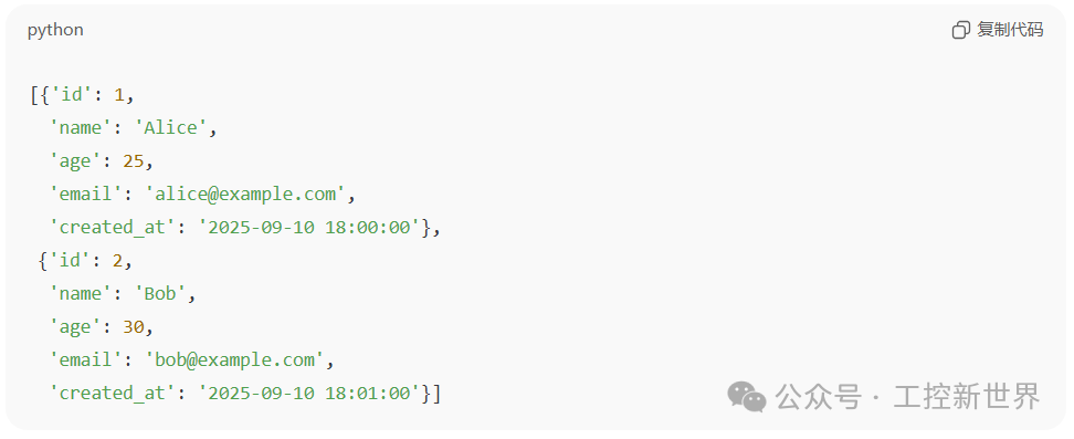输入数据(例如:id = 1name = 'Alice'age = 30