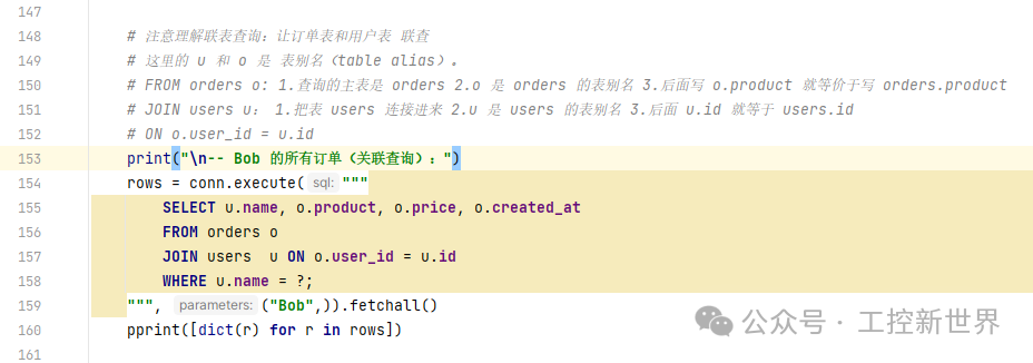通过 ON o.user_id = u.id 把订单和用户对上,就能清楚看到: